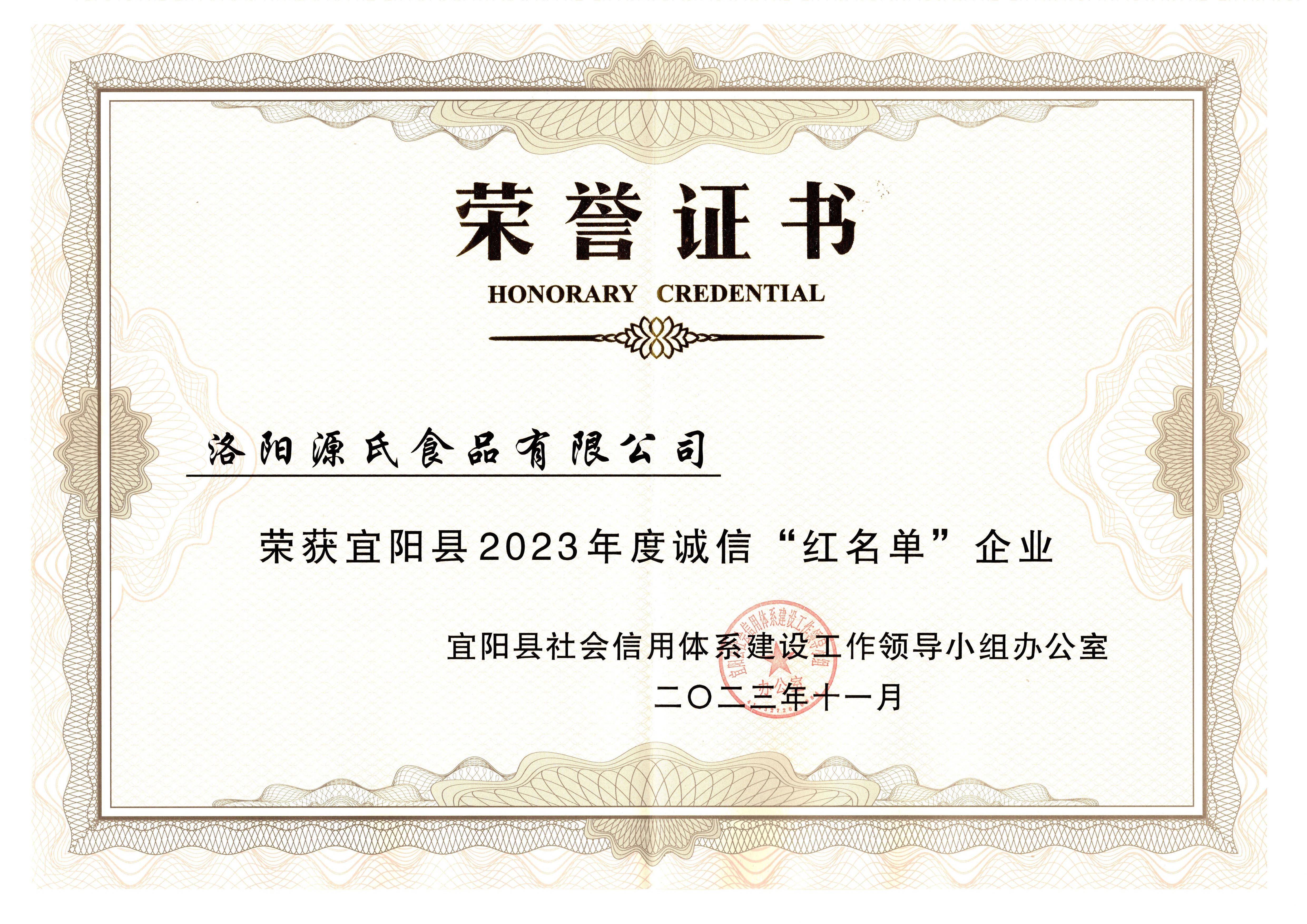 2023-12-2912月27日,洛陽市宜陽縣召開2023年度誠信“紅名單”企業(yè)新聞發(fā)布會(huì),包含源氏食品等在內(nèi)的36家企業(yè)獲得該榮譽(yù)稱號(hào)。 源氏成立至今已逾十二年,以人為本、誠信經(jīng)營不僅是企業(yè)文化,更是貫穿始終…